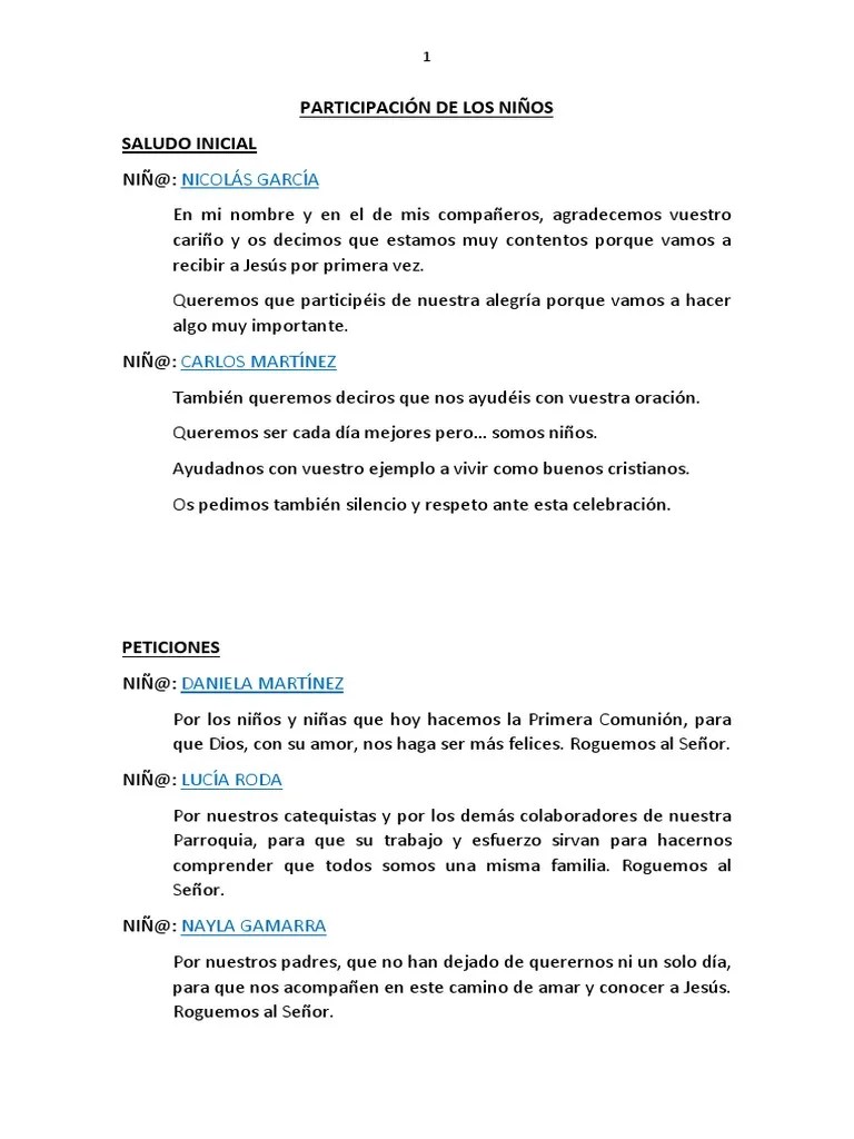 Peticiones Para Misa De Niños De Primera Comunion - La Misa De La Primera Comunion Camino Y Oracion Blog. Las oraciones, para sentir cercano a dios y transmitir nuestro cariño a estos niños. Que por primera vez recibirán la comunión en la eucaristía. Vamos a celebrar la eucaristía en la que los niños y niñas de nuestra comunidad, por primera vez, recibirán a cristo en el sacramento de su . Elevemos, hermanos, nuestra súplicas a . Las peticiones que pueden de hacerse en una primera comunión, pueden ser las siguientes: Alejen de dios y participando en la misa dominical. Petición a esta comunidad para que nuestros hijos sean admitidos. El sacerdote hace una explicación y comentario a las lecturas.
